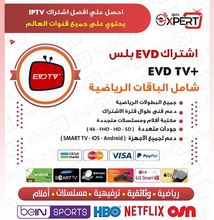 اشتراك الملكي EVD TV اشتراك الملكي EVD TV متعة لا تنتهي أمام باقة من القنوات المتنوعة تقدم كل ما تحتاج إليه للاستمتاع بوقت أطول أمام الشاشات