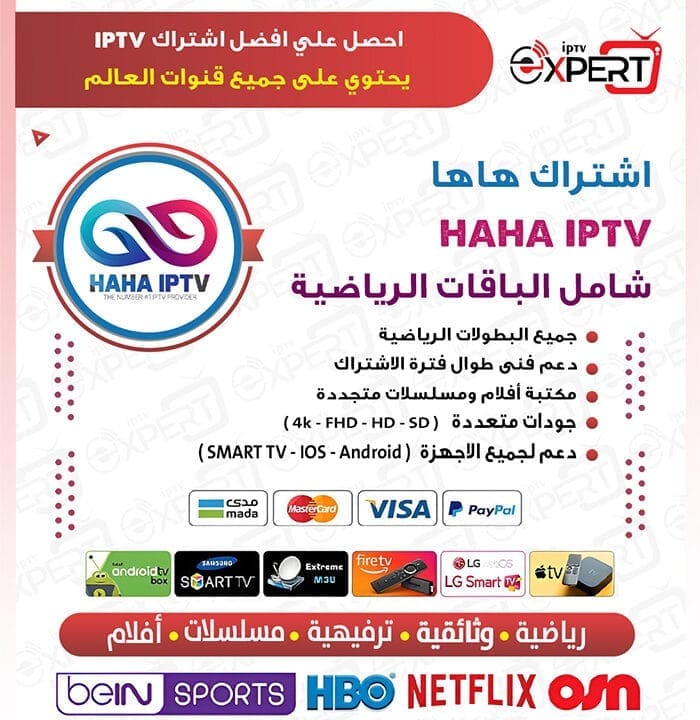 اشتراك HAHA IPTV نقدم إليكم أفضل إشتراك IPTV اشتراك HAHA IPTV هاها IPTV السيرفر المتميز الاكثر رواجا في العالم! تطبيق مميز وسهل الاستخدام سريع التنقل ويتميز